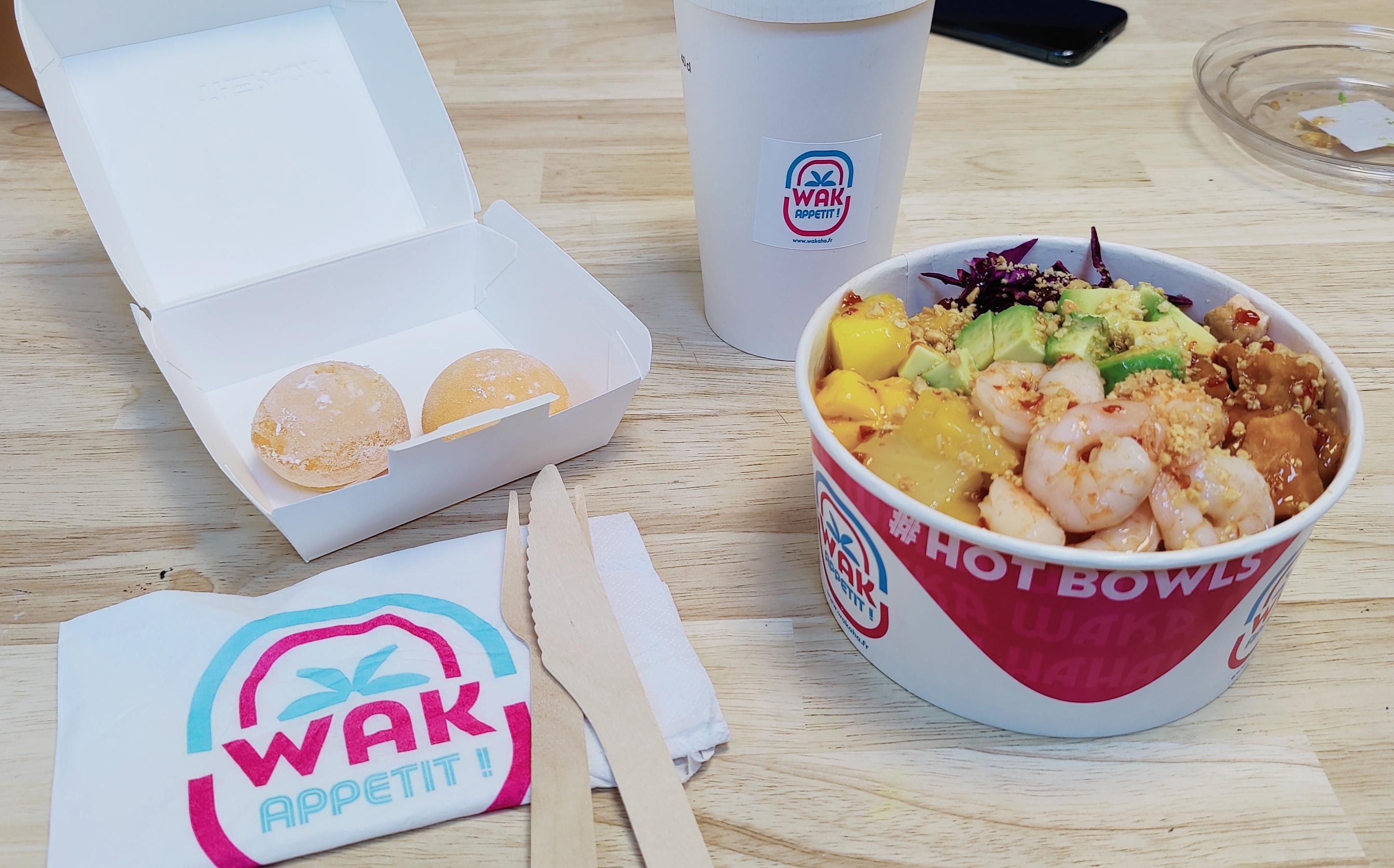 J'ai pris un poke bawl à emporter, c'est bien pratique le dimanche ! C'était super bon j'ai découvert un super dessert les mochi.