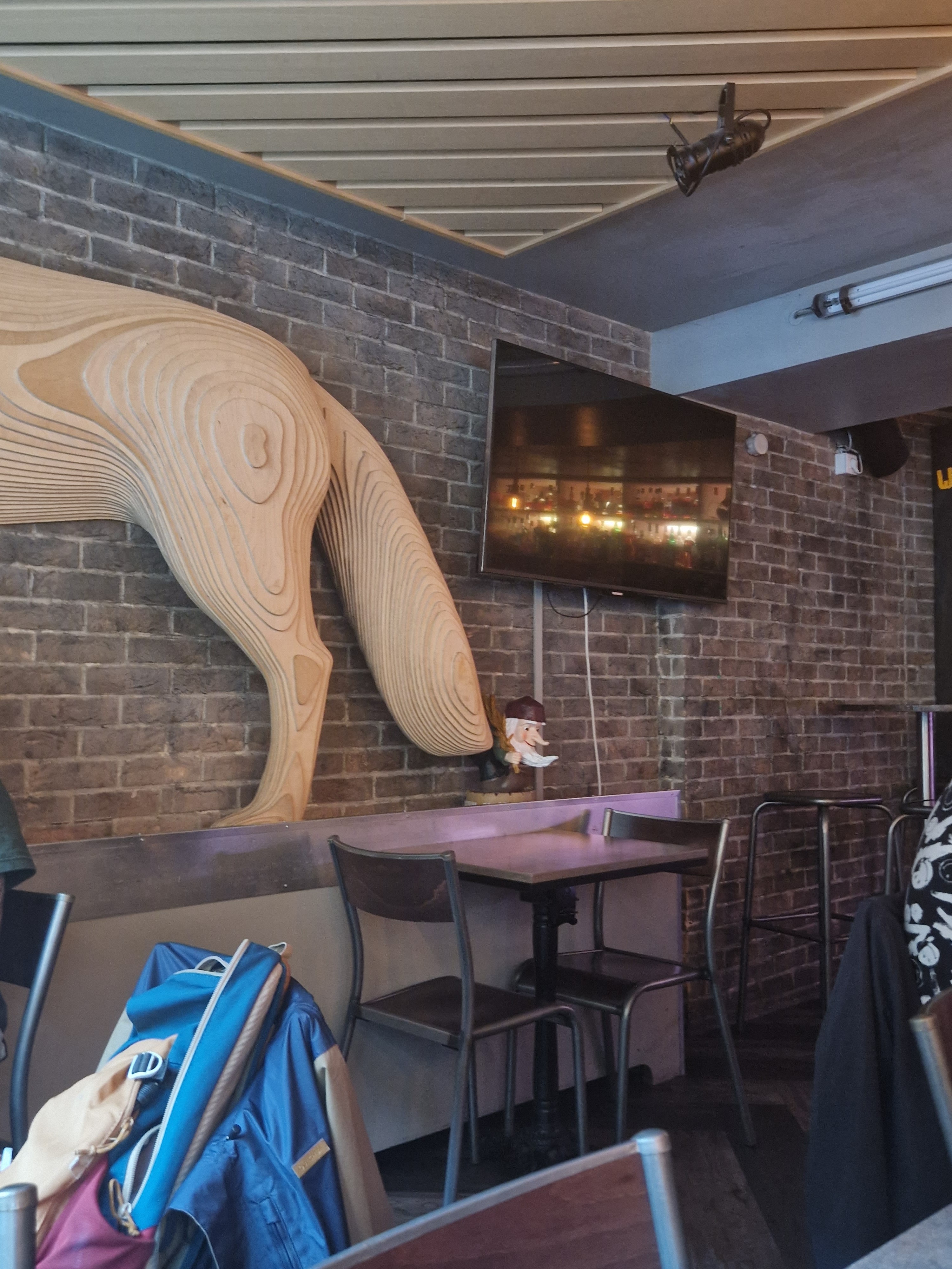Bar super sympathique avec une bonne ambiance. Points négatif : des tablettes parfois petite et une proximité des tables entre chaque clients qui peut être gênant. La nourriture proposé est bonne et a un prix correcte . En soirée il vaut mieux ne pas arriver trop tard pour avoir de la place